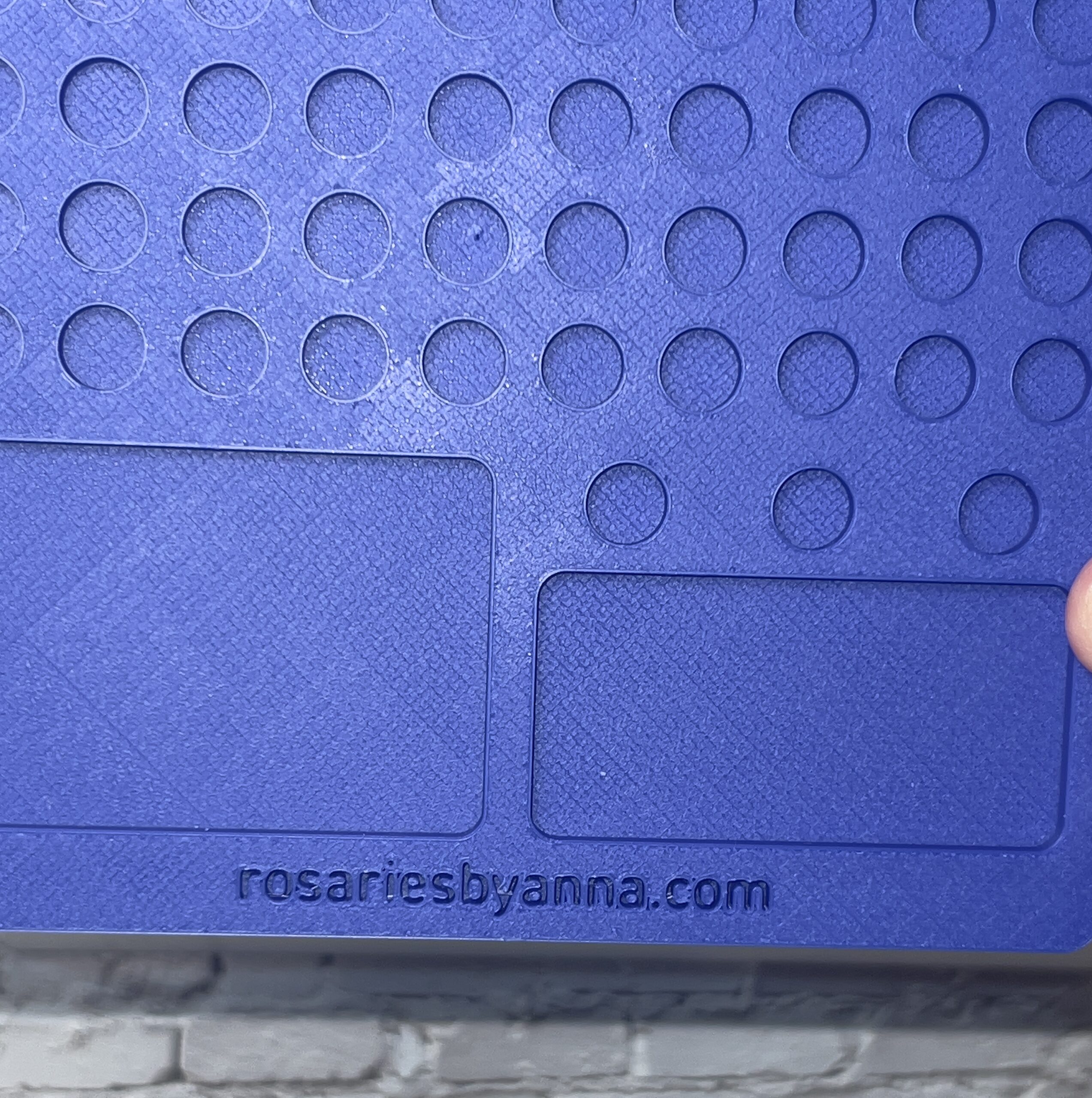 • Staging Areas: Two deep built-in cubbies to hold your crucifix, medals, and spacer beads.